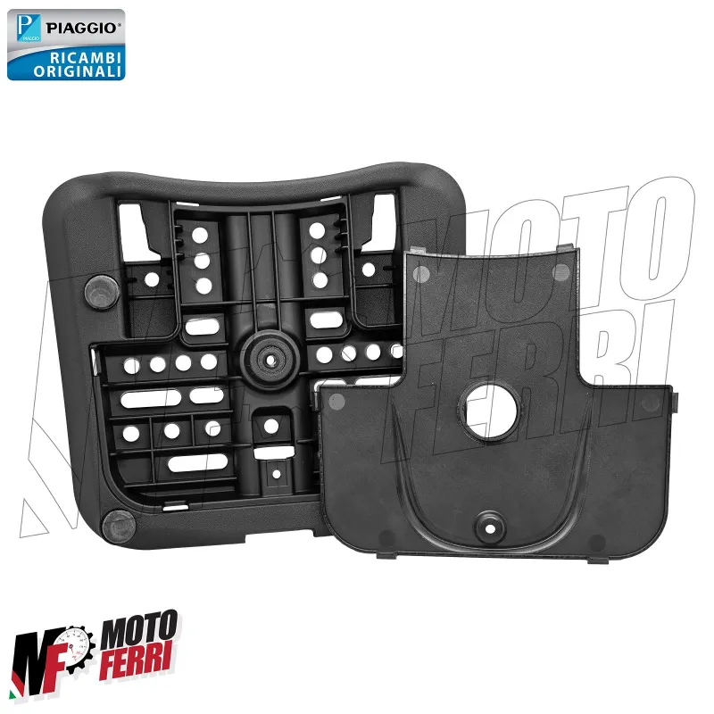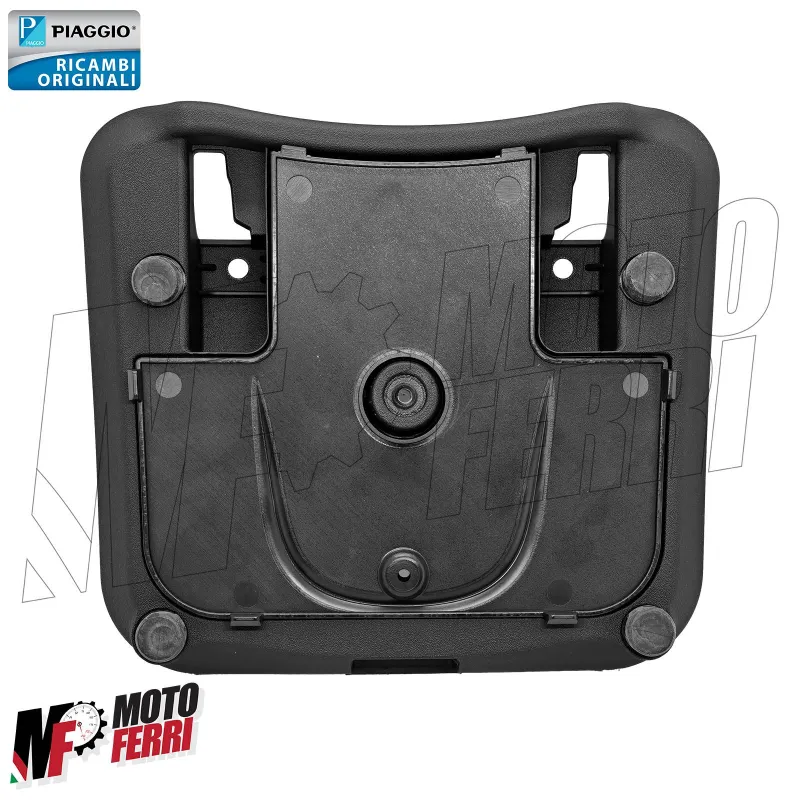 Targhetta con Logo Piaggio. Schienalino colore Nero + Staffa di fissaggio.