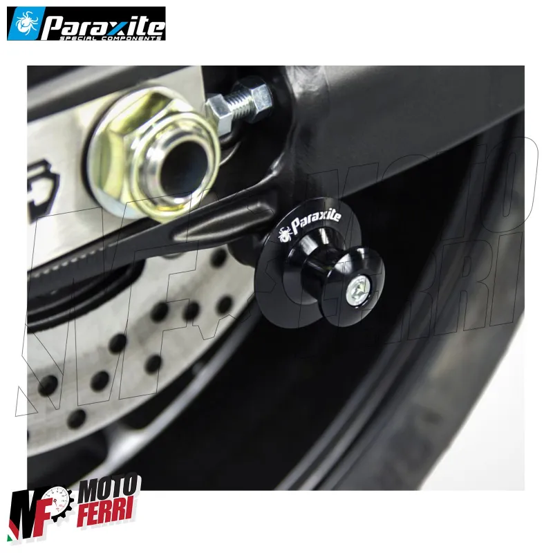 Dispongono di un anello in alluminio (removibile) che protegge il forcellone da graffi accidentali causati dal cavalletto alza moto. Viteria inclusa.