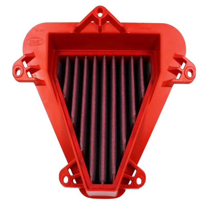 I filtri aria sportivi in cotone BMC sono realizzati con un procedimento chiamato "Full Moulding" che consente di ottenere il caratteristico filtro rosso da un'unica stampata senza richiedere incollaggi negli angoli, causa di facili rotture. La particolare gomma usata nei sistemi di filtrazione BMC è praticamente indeformabile nel tempo e presenta ottime caratteristiche di adesione a qualsiasi forma di airbox.