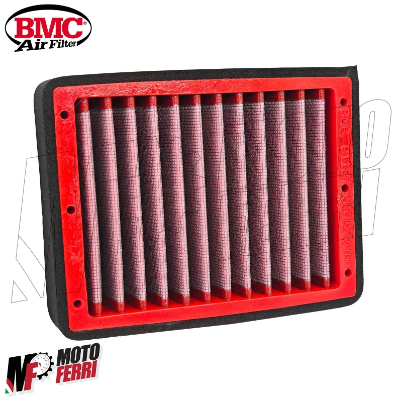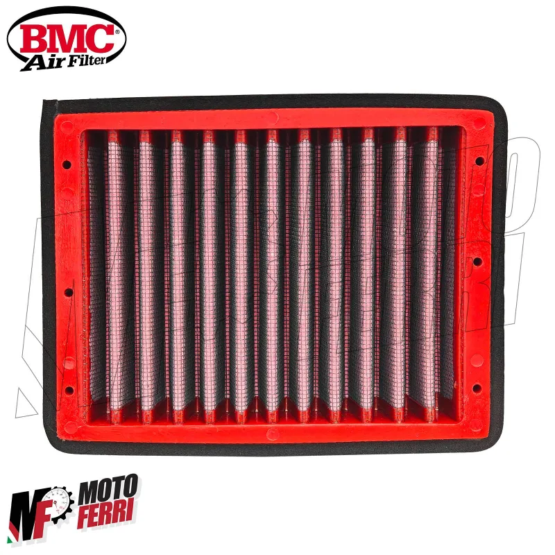 I filtri aria sportivi in cotone BMC sono realizzati con un procedimento chiamato "Full Moulding" che consente di ottenere il caratteristico filtro rosso da un'unica stampata senza richiedere incollaggi negli angoli, causa di facili rotture. La particolare gomma usata nei sistemi di filtrazione BMC è praticamente indeformabile nel tempo e presenta ottime caratteristiche di adesione a qualsiasi forma di airbox.