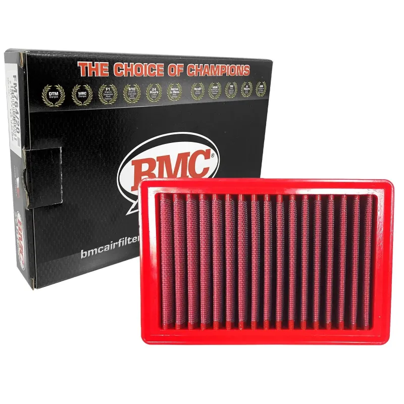 I filtri aria sportivi in cotone BMC sono realizzati con un procedimento chiamato "Full Moulding" che consente di ottenere il caratteristico filtro rosso da un'unica stampata senza richiedere incollaggi negli angoli, causa di facili rotture. La particolare gomma usata nei sistemi di filtrazione BMC è praticamente indeformabile nel tempo e presenta ottime caratteristiche di adesione a qualsiasi forma di airbox.
