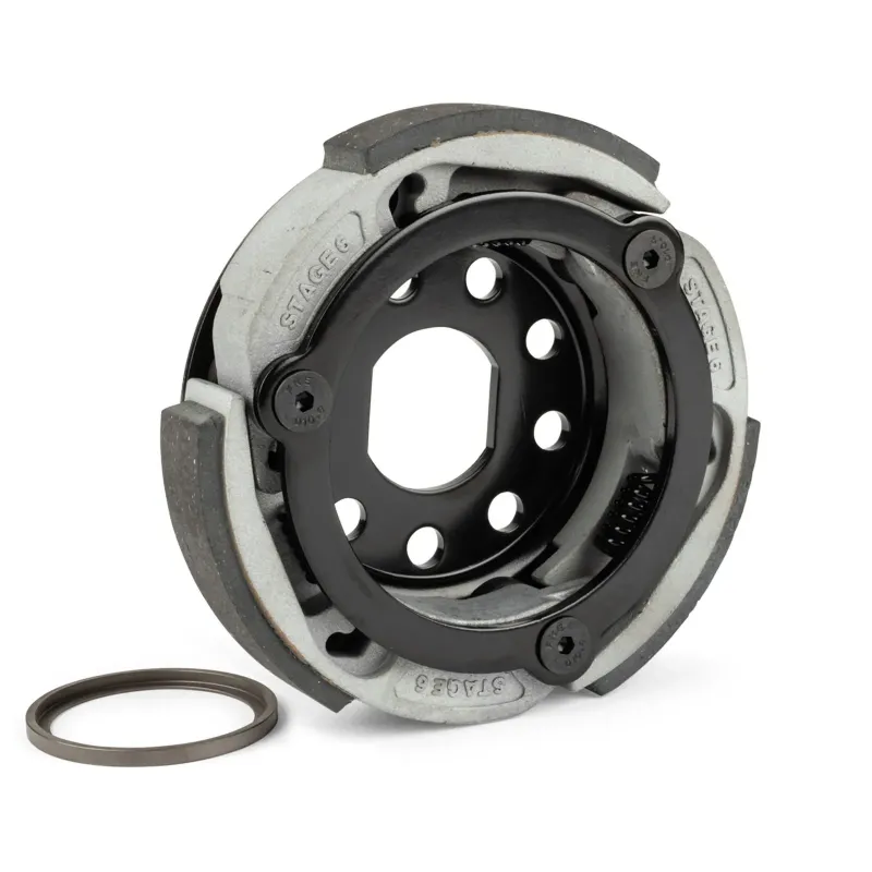 Un anello di rinforzo e perni forgiati, avvitati, tengono i ceppi frizione rinforzati. Frizioni tradizionali impiegano perni semplicemente rivettati, che si logorano con il tempo.