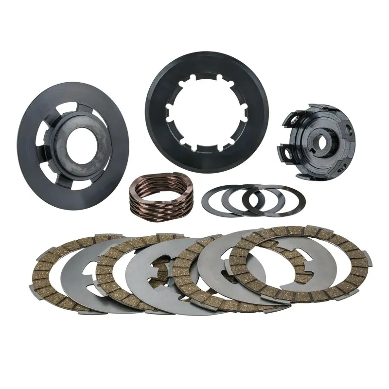 La frizione EVOLUTION è composta da 4 dichi in acciaio rivestiti con materiale d’attrito sinterizzato ad alte prestazioni (spessore 1,9 mm) e tre in acciaio (spessore 1 mm.) ed il montaggio è consigliato per motori preparati sopra i 15 HP.