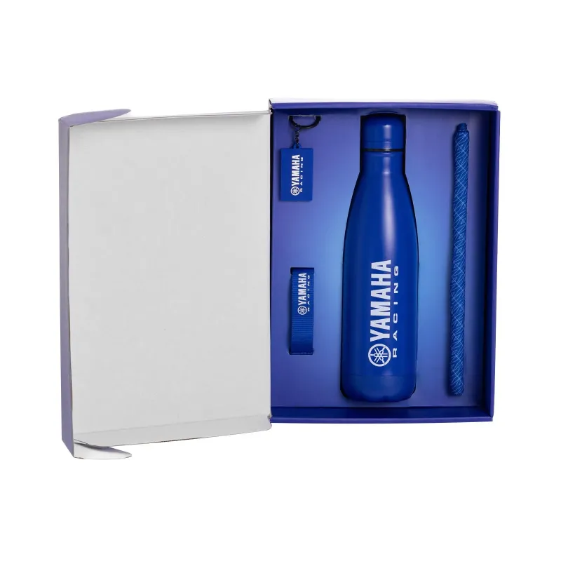Il regalo perfetto per gli amanti di Yamaha Racing, il Paddock Blue Gift Set contiene un cordino, un necktube, un portachiavi e una borraccia per accessoriare la vita quotidiana.