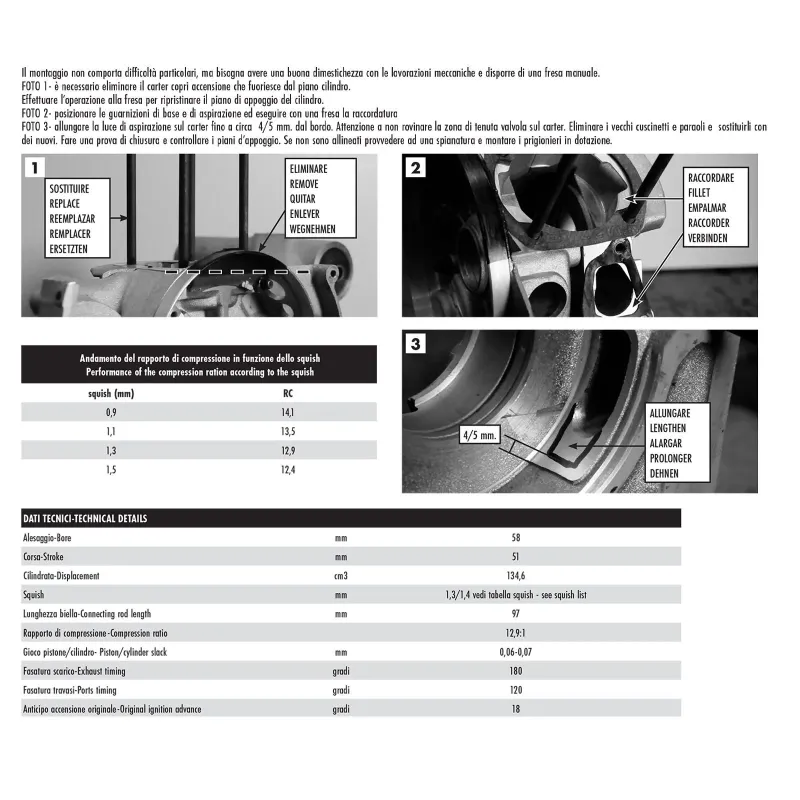 Il cilindro è fuso in ghisa, con alesaggio diametro 58mm. Diagramma di distribuzione “racing”.