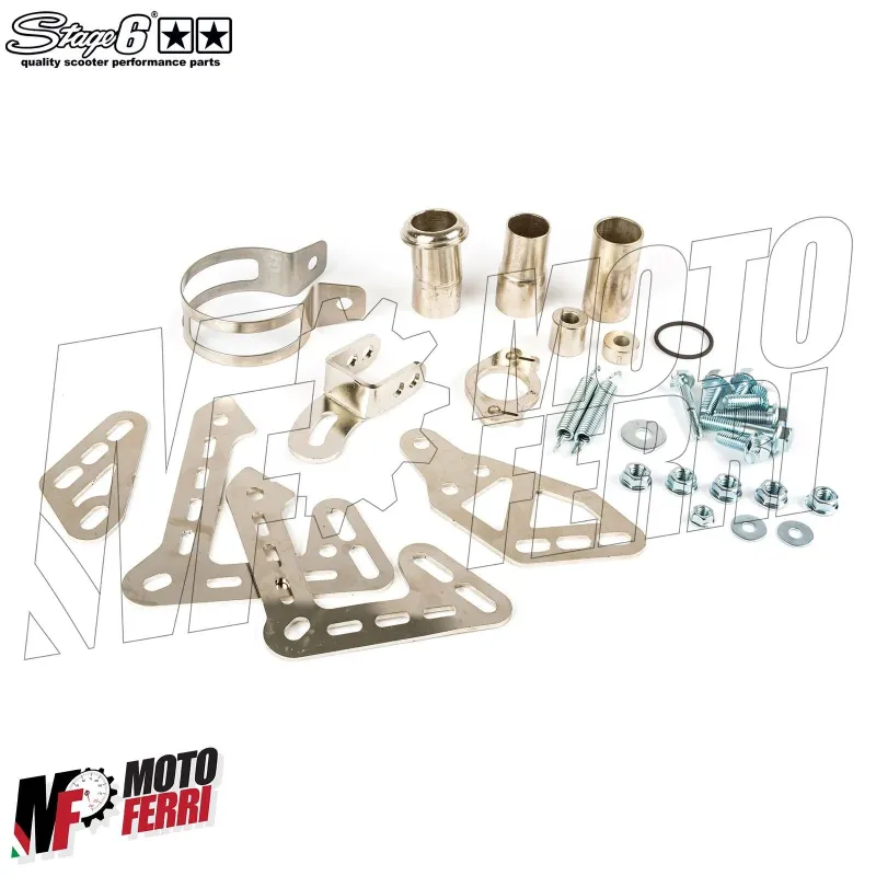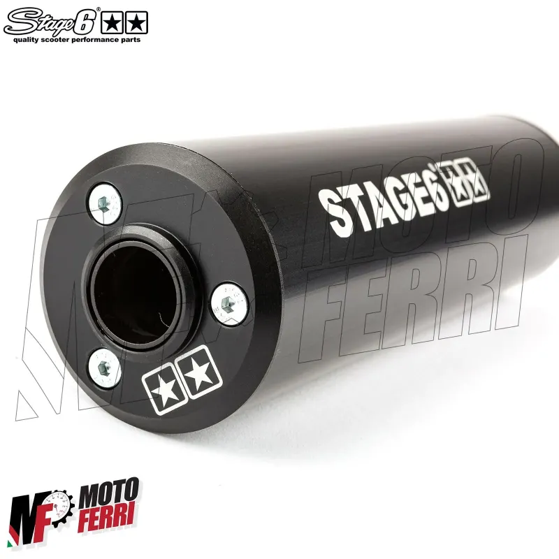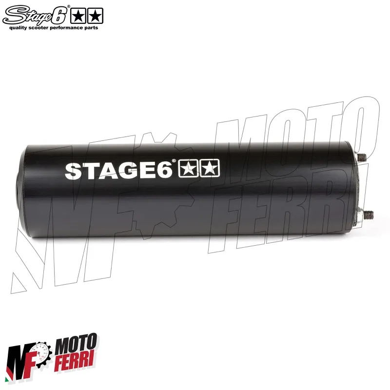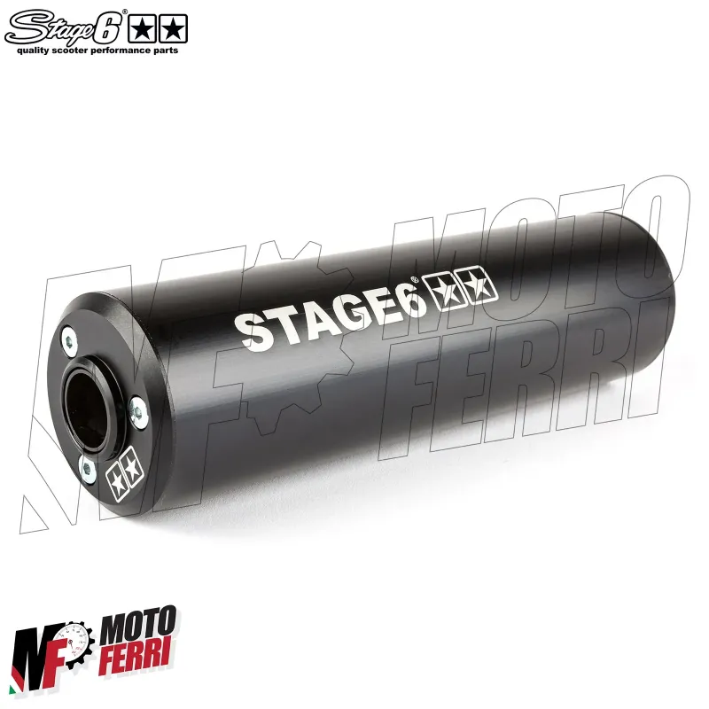 L'impianto di scarico a basso passaggio di stage6 streetrace è realizzato in lamiera laminata saldata ed è dotato di un kit di montaggio per tutti i motori Derbi o AM6.