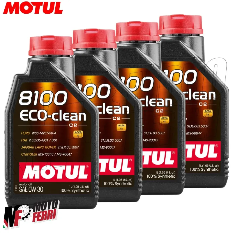 MOTUL 8100 ECO-CLEAN 0W-30 è un olio motore 100% sintetico a risparmio di carburante sviluppato per motori FORD