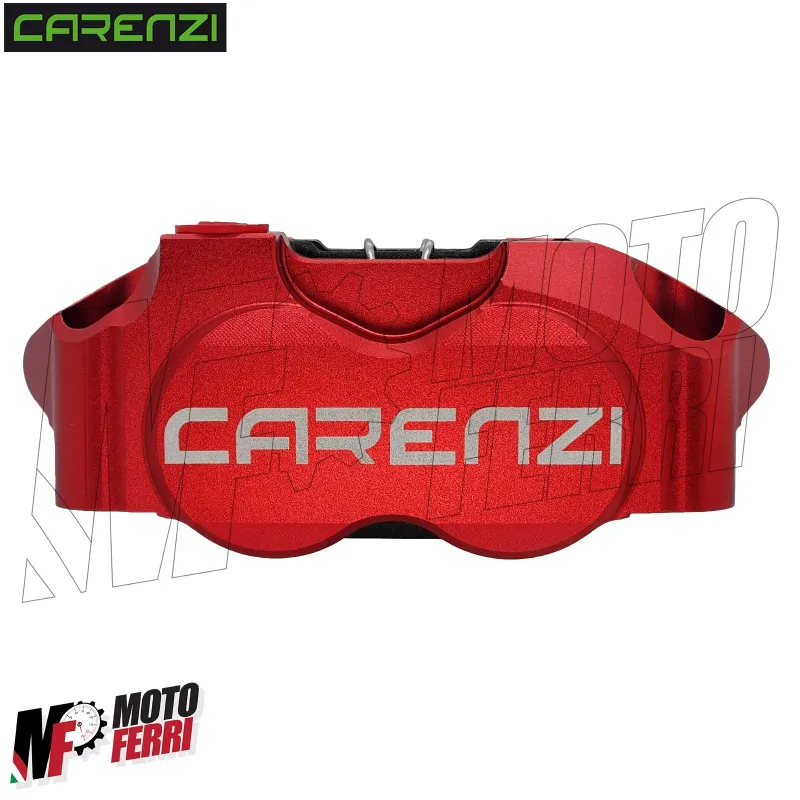 La superficie della pinza freno Carenzi è decorata con un logo inciso e sono disponibili con finitura anodizzata protettiva rossa.