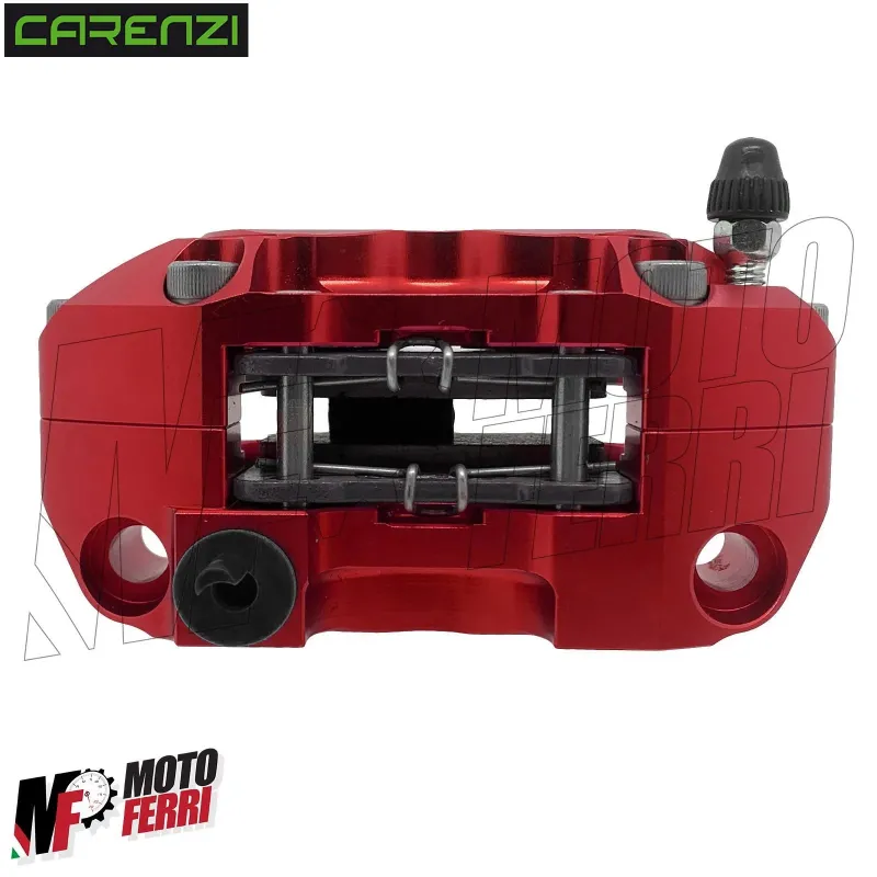 Questa pinza freno a quattro pistoni Carenzi Racing è lavorata con una solida lega di alluminio CNC