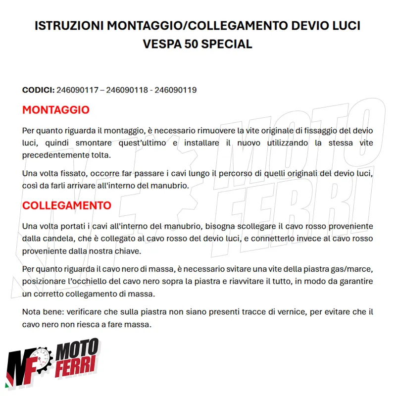 Progettato specificamente per Vespa 50 Special d'epoca, offre la comodità e la sicurezza di un commutatore a chiave moderno.