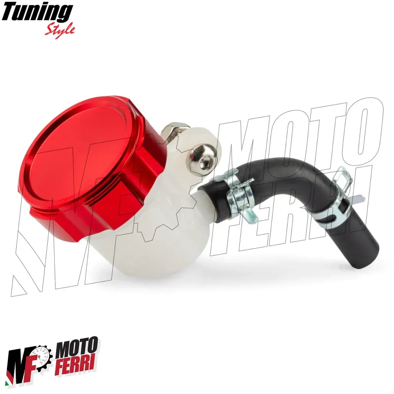 Il diametro del serbatoio del liquido dei freni è di 42 mm, per soddisfare la capacità richiesta da molti veicoli a due ruote di piccole e grandi dimensioni. Il serbatoio si monta sulla pompa freno tramite una vite integrata direttamente nel serbatoio e viene fornito con un tubo di gomma per l'alimentazione dell'impianto frenante. Il set viene fornito con un tappo del serbatoio in alluminio CNC anodizzato nero.